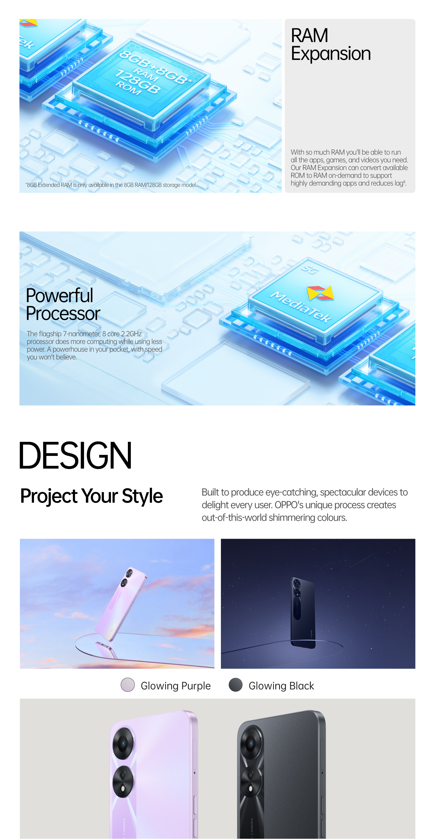 OPPO A78 5G/高达16GB RAM/双立体声扬声器/33W SUPERVOOC/5000mAh长效电池