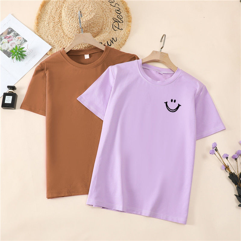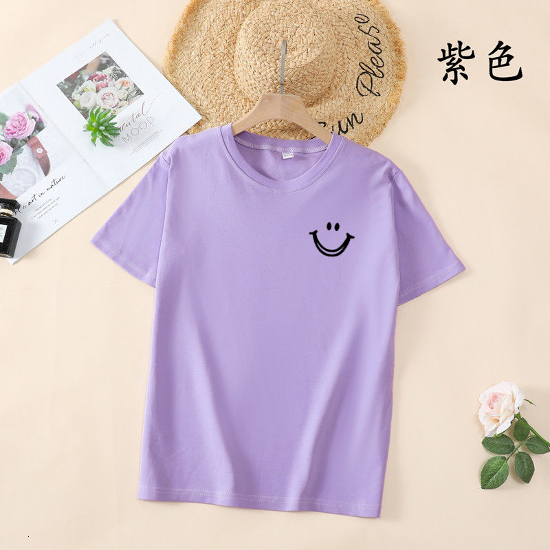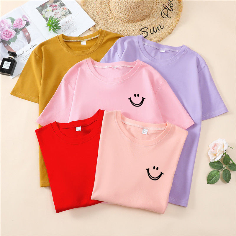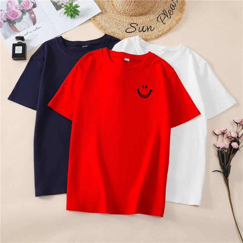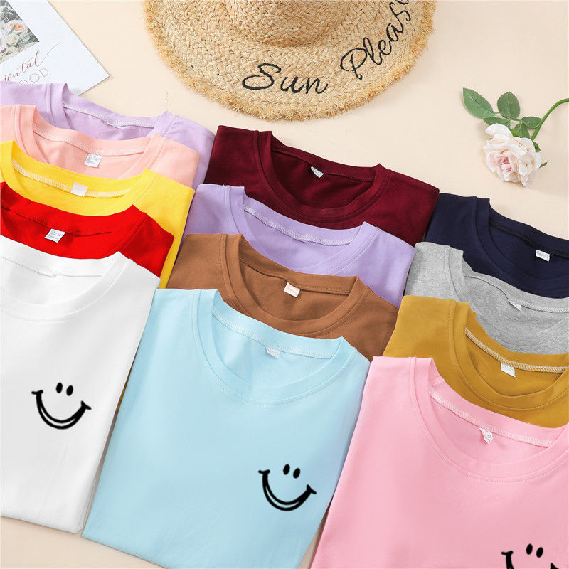 韩国T恤女士优雅舒适微笑T女士短袖卡通衬衫